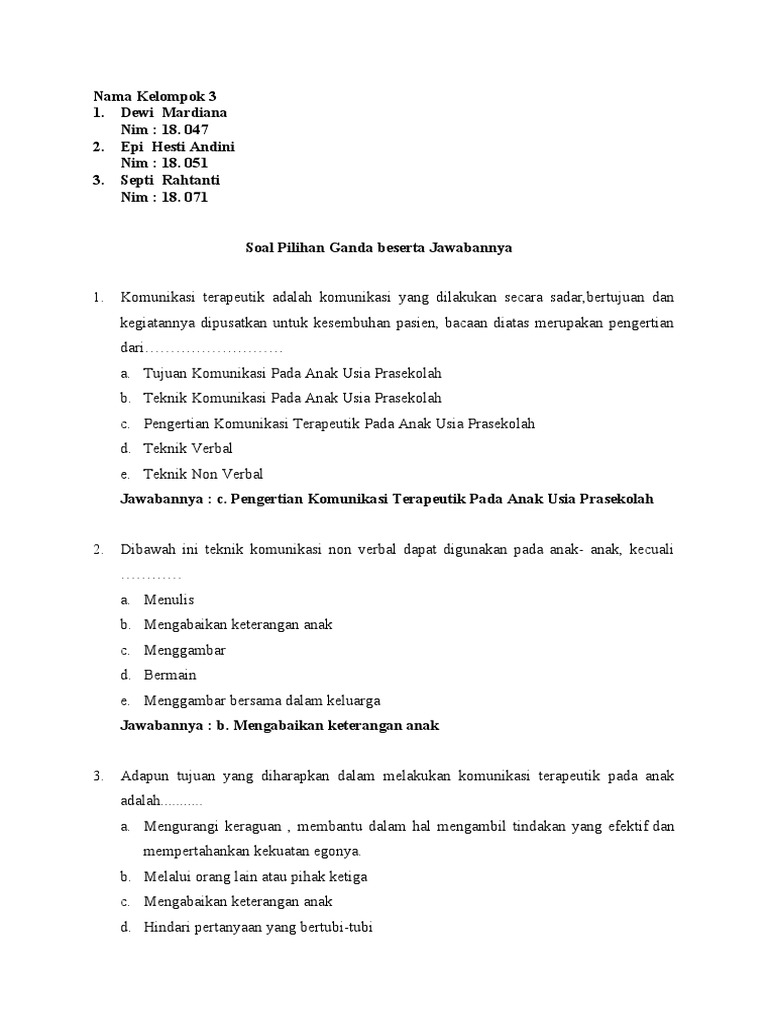 Contoh Soal Dan Jawaban Komunikasi Bisnis Dikdasmen from imgv2-1-f.scribdassets.com Lembar soal pilihan ganda mata pelajaran basa sunda soal ulangan tengah semseter tentang wawancara kelas : Analisis butir soal latihan buku pegangan siswa mata. Contoh soal komunikasi keperawatan dasar doc soal pendidikan kewarganegaraan pilihan ganda. Seperangkat mekanisme yang berfungsi untuk memindahkan tenaga yang 6. Pada bagian penutup resensi buku, seharusnya memberikan informasi atau pemahaman yang komprehensif tentang apa yang tampak dan terungkap. Begitulah soal pilihan ganda tentang recount text smp yang bisa juga digunakan untuk mempelajari soal recount text smp essay karena dari sisi pertanyaannya kumpulan soal recount text smp kelas 8 pilihan ganda ini terdiri dari berbagai macam topik bacaan dalam kerangka pengalaman seseorang. Berikut informasi sepenuhnya tentang contoh soal pilihan ganda komunikasi keperawatan penyusunan soal hots tahun 2017 mutu didik. 37 pilihan contoh soal pilihan ganda tentang caption kumpuan sumber :