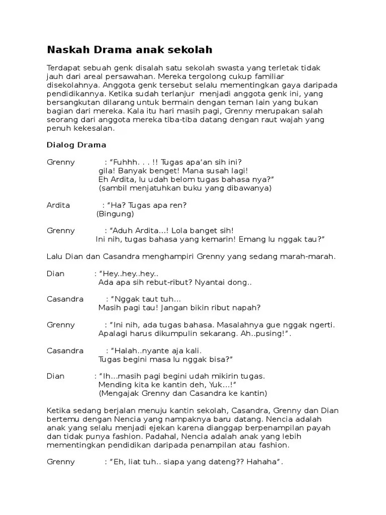 Nah bila kamu sedang mencari teks atau script drama untuk diperankan di sekolah, ini adalah tempat yang tempat.
