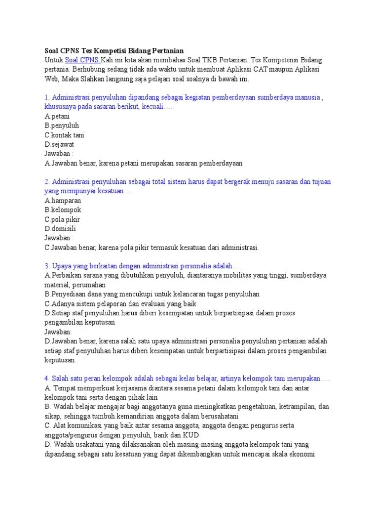 Contoh soal cpns 20192020 prediksi soal skb penyuluh pertanian latihan tes cpns kementrian pertanian source contoh soal cpns 2020. Untuk contoh soal kali ini terdiri dari 20 soal pilihan ganda dengan disertai. ✓ pengiriman cepat ✓ pembayaran 100% aman. Administrasi penyuluhan dipandang sebagai kegiatan pemberdayaan sumberdaya manusia ,. Contoh soal pppk/p3k formasi penyuluh pertanian.